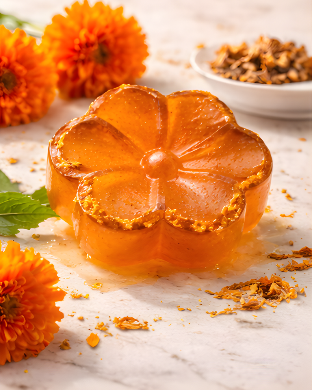Perfect for everyday use, Marigold Flower Soap combines gentle cleansing with the natural beauty of herbal skincare.