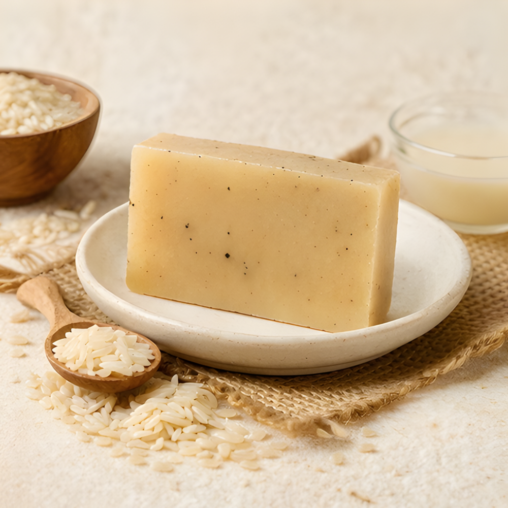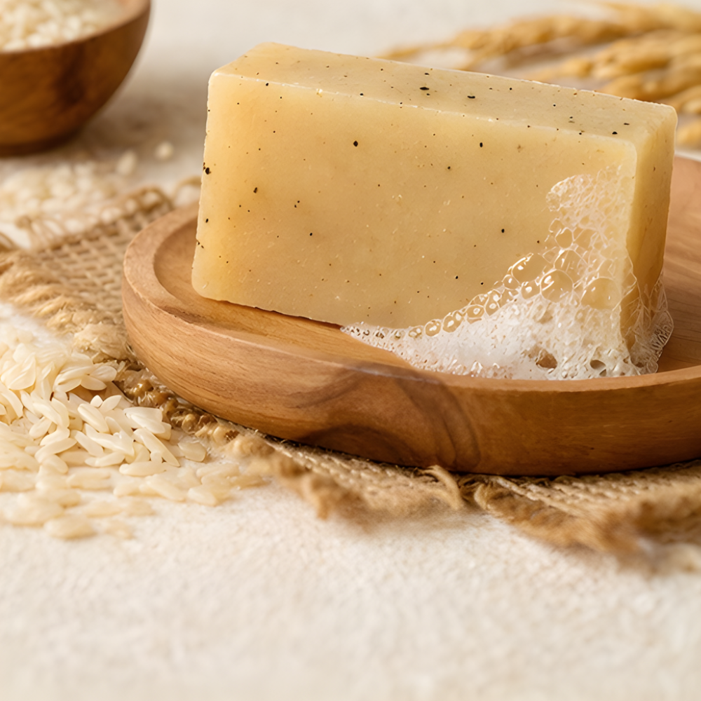 A gentle handmade soap enriched with rice extract that helps brighten skin, even tone, and give a smooth, radiant finish.